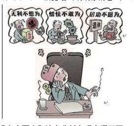 通过漫画,我们能够看到一些干部无利不想为、懦怯不敢为、居功不肯为。若是我们任由不想 为、不敢为、不肯为的现象延伸,必然会挫伤其他D员干部的积极性,必然会损害D委、的抽象,必然会损害群众的好处。为此,我们必需深究其缘由,对症下药。