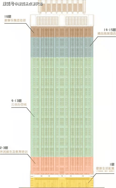 楼栋业态:1层便利糊口配套、2-3层休闲文娱及教育培训、4-13层云开办空间、14-15层精品高端酒店、16层新攀乐集团总部。